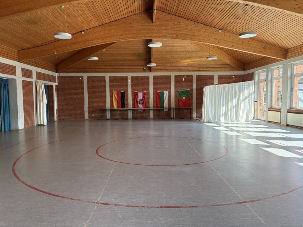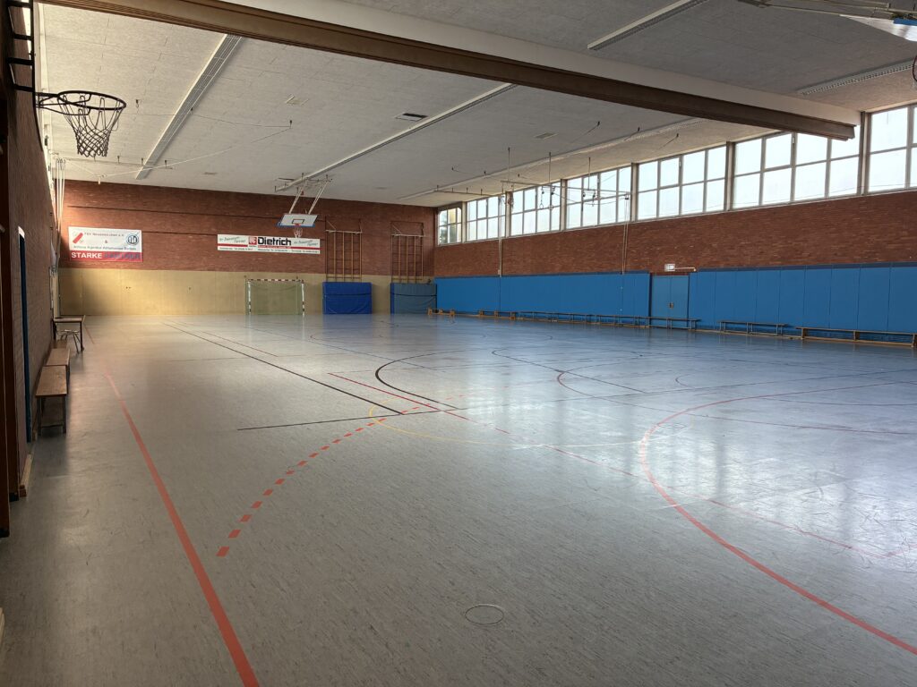 Unsere große Sporthalle bietet viel Platz zum Turnen, Spielen und Bewegen. Hier haben die Kinder beim Sportunterricht und auch in Regenpausen viel Freude an der Bewegung.