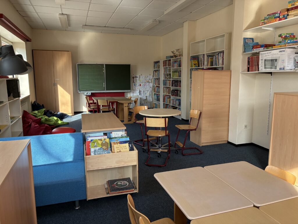 Unsere Schulbücherei befindet sich im Nebengebäude und lädt zum Stöbern, Lesen und Entdecken spannender Geschichten ein.