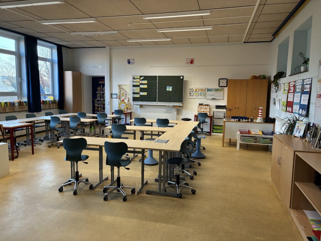 In unseren Klassenräumen lernen die Kinder lesen, schreiben und rechnen. Fast alle Klassen haben einen angegliederten Gruppenraum, verfügen über gemütliche Ruhezonen und sind mit digitalen Tafeln ausgestattet.